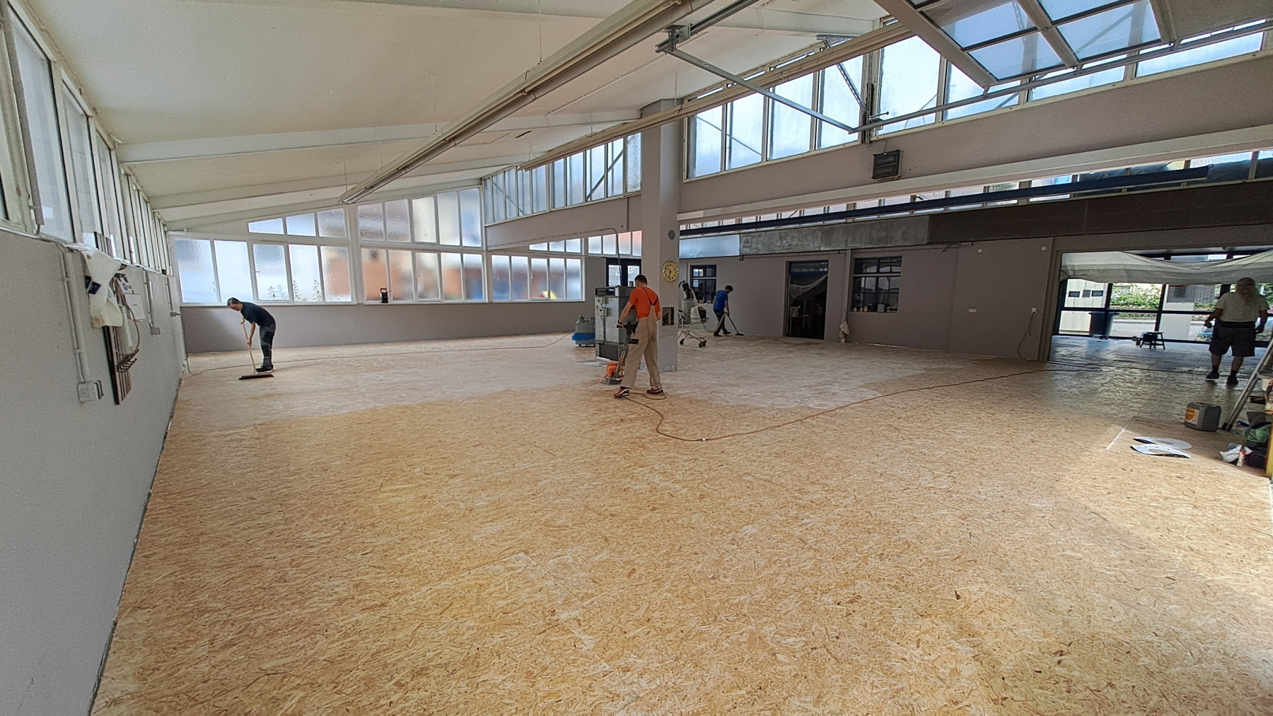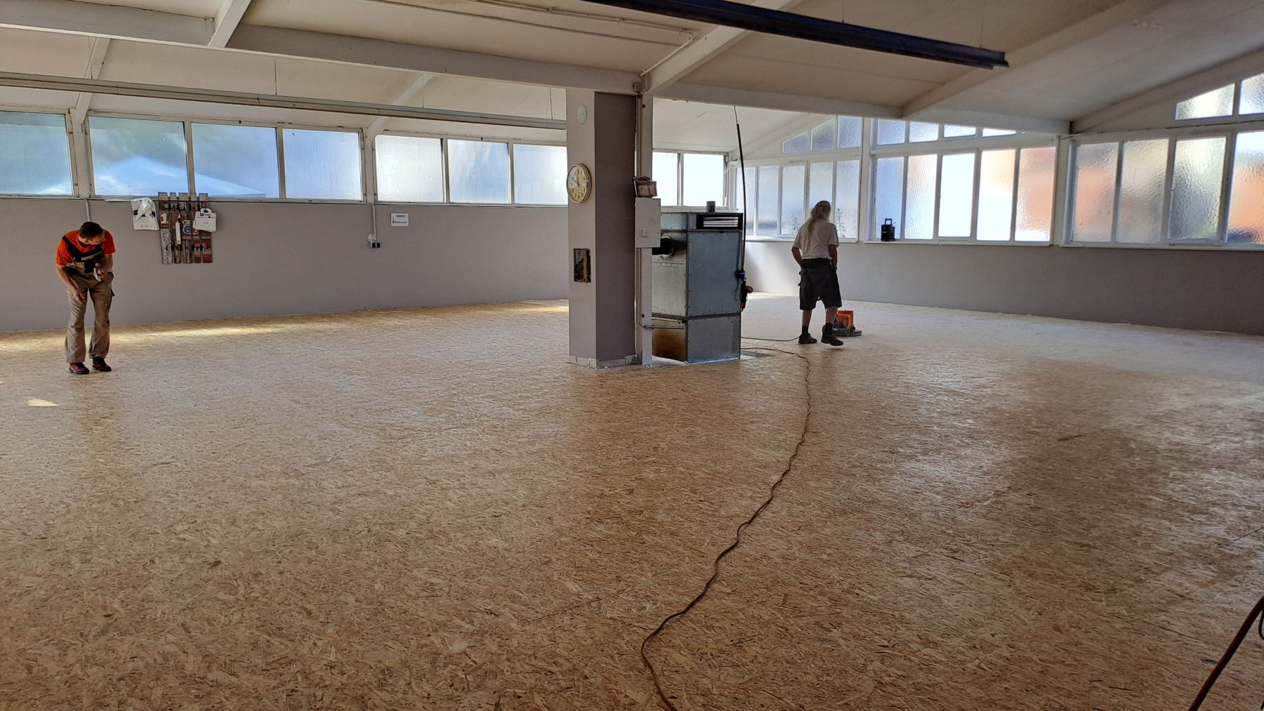 Hallenboden ist fertig und versiegelt0 Nun ist es geschafft: der Boden in der Halle ist vollständig verlegt, und die Versiegelung ist auch aufgebracht; diese muss jetzt ein paar Tage vollständig trocknen.